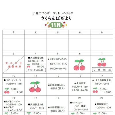 さくらんぼだより・イベントカレンダー【2025年11月号】を更新しました。