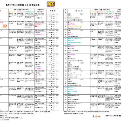献立表【2026年3月号】