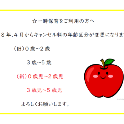一時保育からのお知らせ