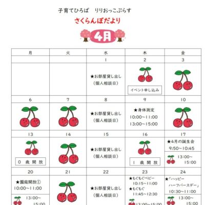 さくらんぼだより・イベントカレンダー【2026年4月号】を更新しました。