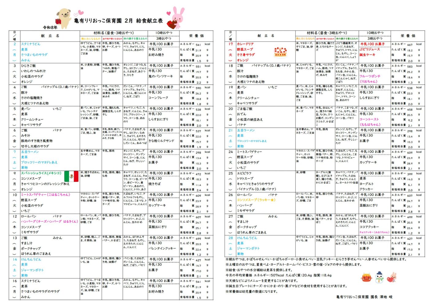 献立表【2026年2月号】を更新しました。 pdfはこちらからご覧ください。